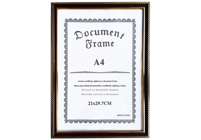 Выполнена из пластика цвета темный орех с двойной позолотой, за счет чего отлично впишется в домашний и деловой интерьер. Имеется возможность вертикал..