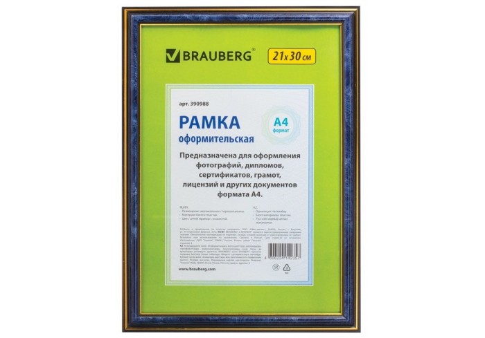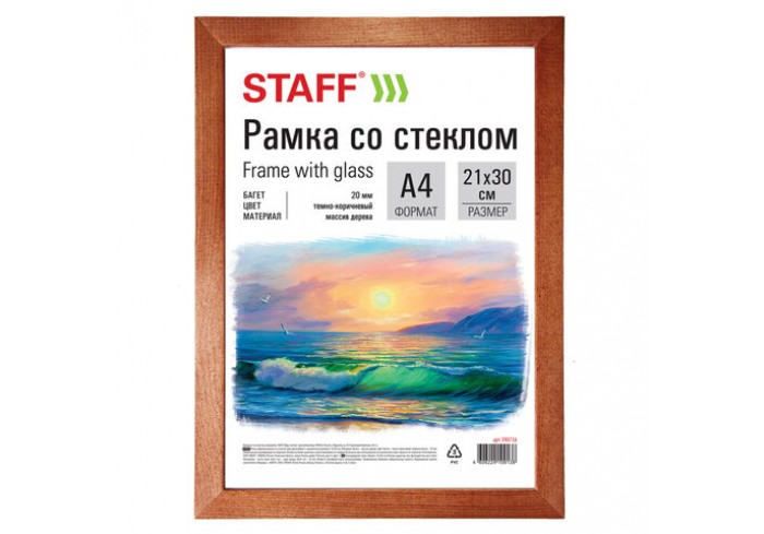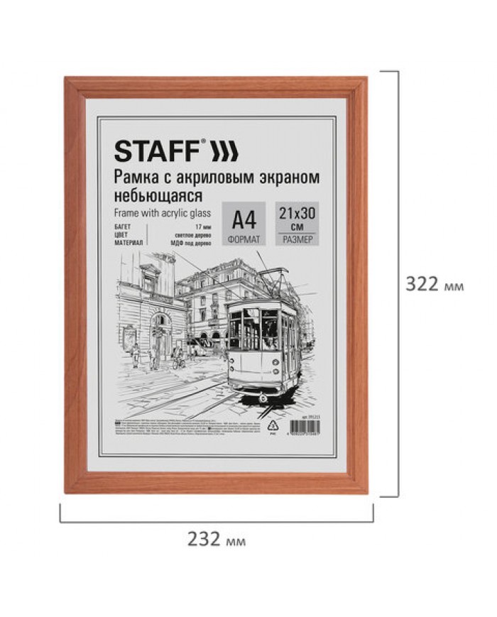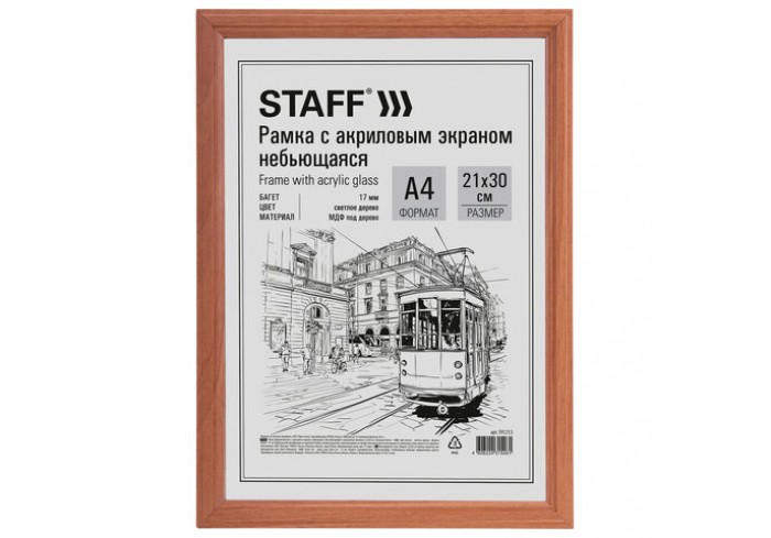 Рамка формата А4 (21х30 см) выполнена из МДФ под дерево в цвете "светлое дерево", за счет чего отлично впишется в домашний и деловой интерьер. Имеется..