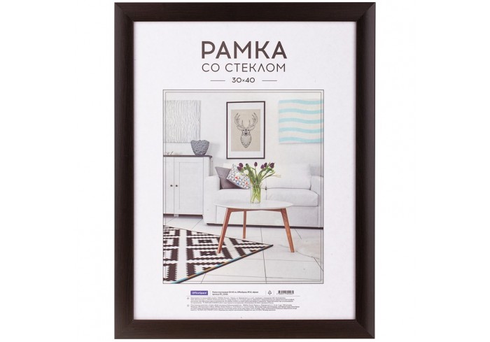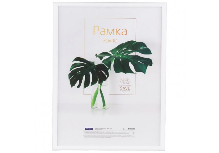 Рамка OfficeSpace предназначена для большого фото размером 30x40 см. Можно подвесить вертикально или горизонтально. Рамка из пластика выглядит стильно..