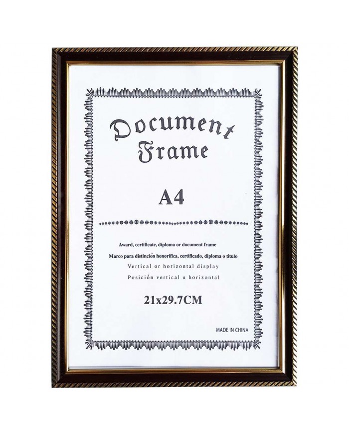 Рамка 21х29,7 пластиковая со стеклом, темный орех с двойной позолотой