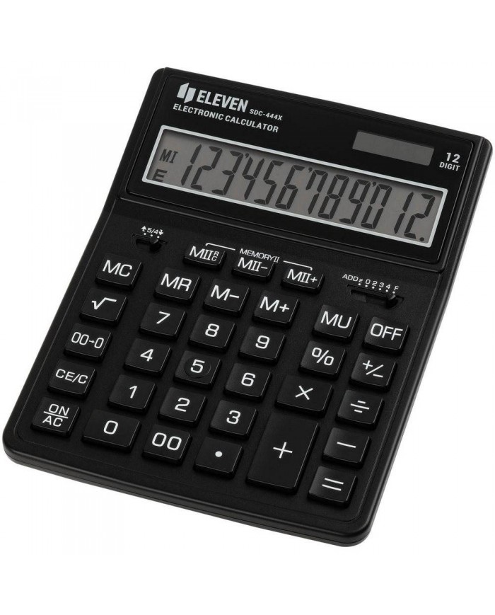 12-ти разрядный настольный калькулятор Eleven SDC-444X-BK предназначен для выполнения арифметических операций. Оптимальный набор функций поможет автоматизировать расчёты: вычисление квадратного корня, коррекция последнего введенного значения, кнопка «00», двойная память, расчёт наценки, смена знака. Двойное питание (солнечная батарея + батарея LR44) и автоматическое отключение увеличивают срок службы. Размер калькулятора – 155*204*33 мм, вес – 230 г, цвет – чёрный. Упакован в картонную коробку. Гарантия 5 лет.