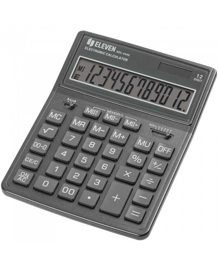 12-ти разрядный настольный калькулятор Eleven SDC-444X-GR предназначен для выполнения арифметических операций. Оптимальный набор функций поможет автоматизировать расчёты: вычисление квадратного корня, коррекция последнего введенного значения, кнопка «00», двойная память, расчёт наценки, смена знака. Двойное питание (солнечная батарея + батарея LR44) и автоматическое отключение увеличивают срок службы. Размер калькулятора – 155*204*33 мм, вес – 230 г, цвет – серый. Упакован в картонную коробку. Гарантия 5 лет.