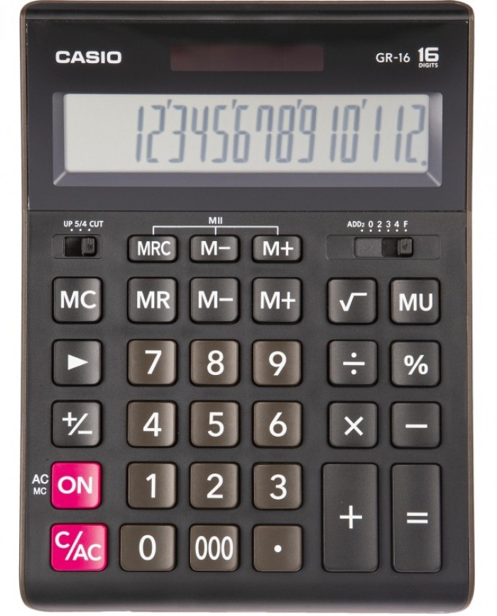 Калькулятор Casio GR-16 в пластиковом корпусе с 16-разрядным ЖК-дисплеем. Позволяет корректировать введенное число, задавать настройки округления и количества знаков после запятой. Калькулятор имеет оптимальный набор вычислительных функций: основные математические операции, расчет процентов, извлечение квадратного корня, запоминание промежуточных результатов. Удобная клавиатура снабжена кнопкой ввода двойного и тройного нуля. Тип клавиатуры: пластик. Наличие металлической панели: нет. Батарейка LR44 в комплекте. Автоматически отключается через 6 минут бездействия.Внешний вид и/или характеристики товара могут быть изменены производителем в соответствии с производственным процессом.