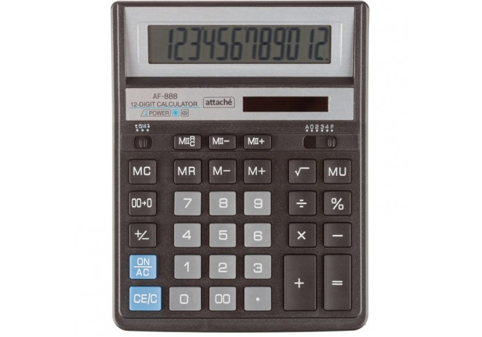 Калькулятор Attache AF-888 настольный в пластиковом корпусе с 12-разрядным дисплеем. Эргономичная форма и крупные клавиши создают максимальный комфорт..