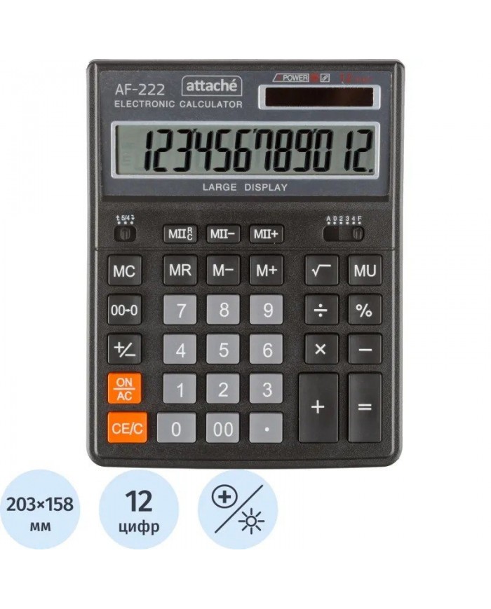 Калькулятор Attache AC-222 настольный в пластиковом корпусе с 12-разрядным дисплеем. Сделан в серебристом цвете. Имеет функцию расчета процентов. В ка..