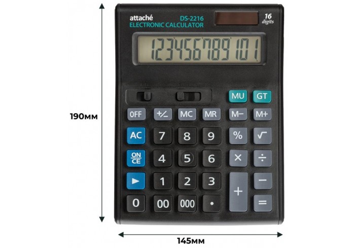 Калькулятор Attache AF-777 настольный в пластиковом корпусе с 16-разрядным дисплеем. В калькуляторе имеется два источника питания: солнечная батарея и..