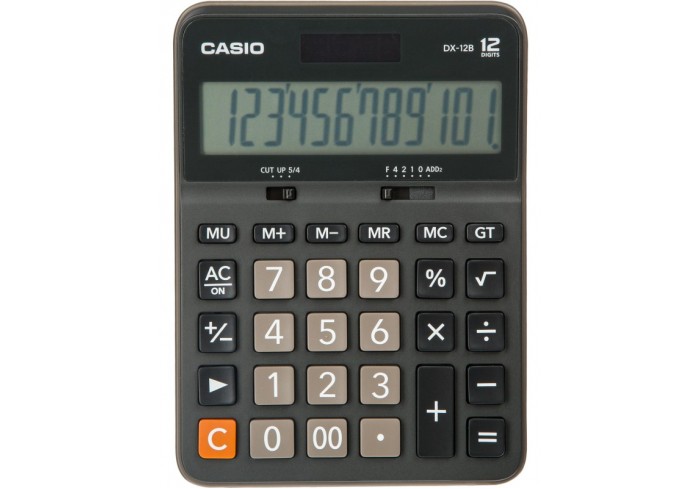 Настольный калькулятор Casio DX-12B с большим 12-разрядным ЖК-дисплеем, вычислением корня, расчетом процентов, наценкой, двойным питанием, коррекцией ..