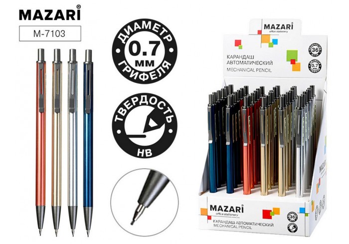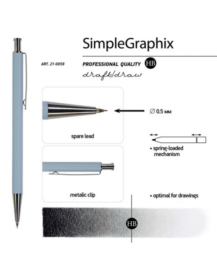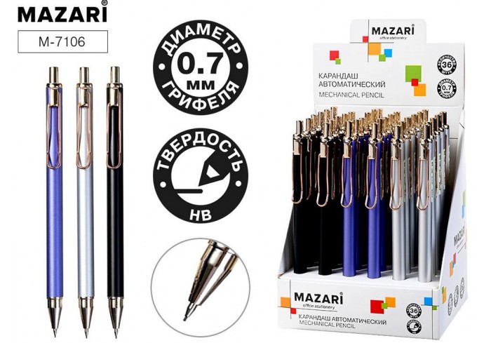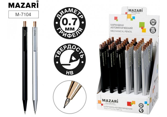 Механический карандаш снабжен грифелем HB 0,7 мм и готов к использованию. Карандаш подходит для рисования, черчения, а также ведения аккуратных записе..