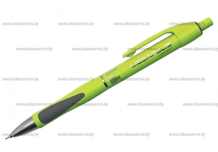 Механический карандаш с металлическим наконечником и убирающейся цангой. Карандаш имеет круглый неоновый корпус с эргономичной грип-зоной, оснащенной ..