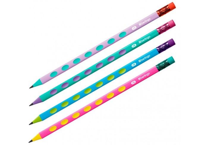 Чернографитный ударопрочный карандаш Berlingo "Haze" из гибкого пластика, с ластиком, с заточкой. Трехгранный эргономичный корпус со специальными выем..