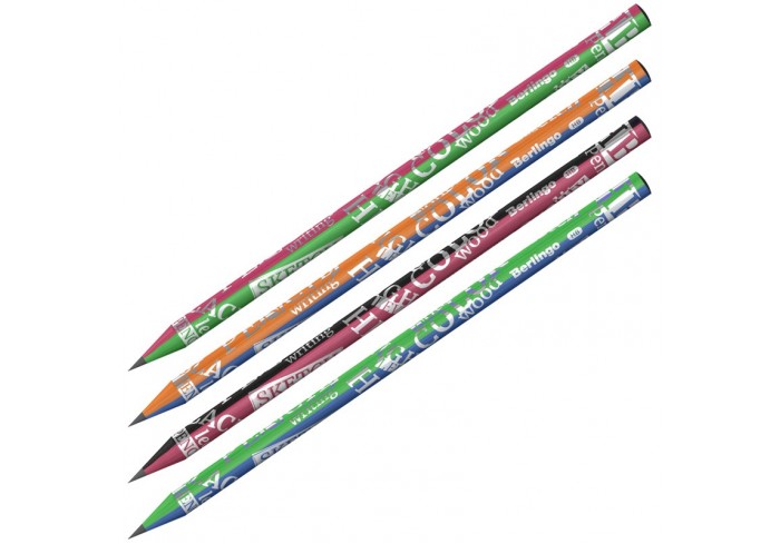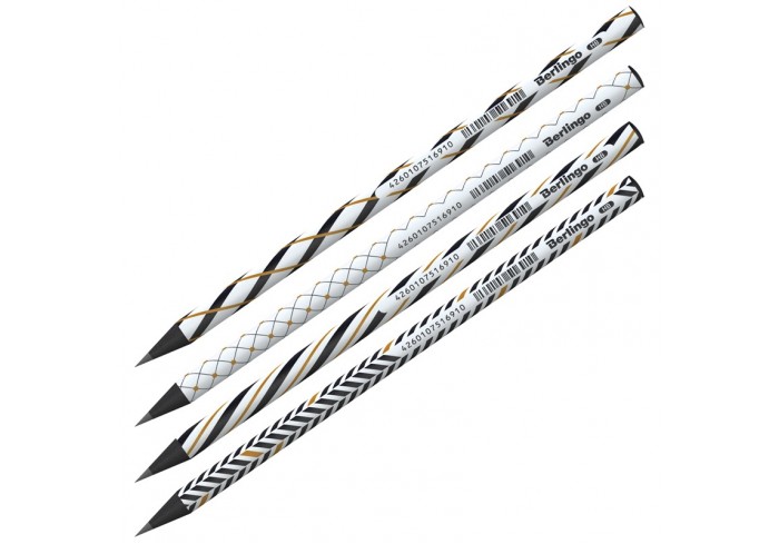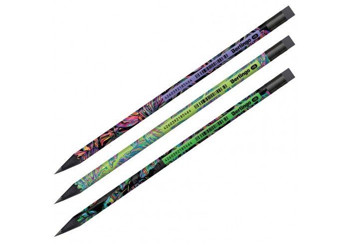 Чернографитный ударопрочный карандаш Berlingo "Vortex" из черного дерева с заточкой. Матовое покрытие корпуса, дизайны ассорти. Не ломается при падени..