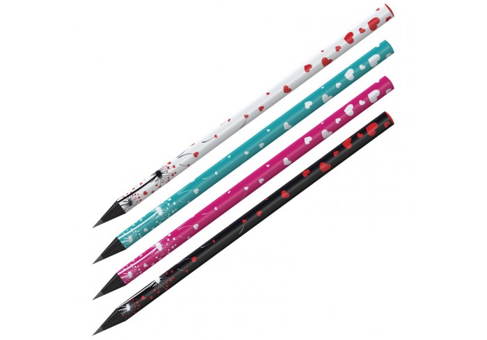 Чернографитный карандаш из черного дерева, с заточкой. Яркие дизайны ассорти с матовым покрытием корпуса. Специально обработанная древесина для идеаль..