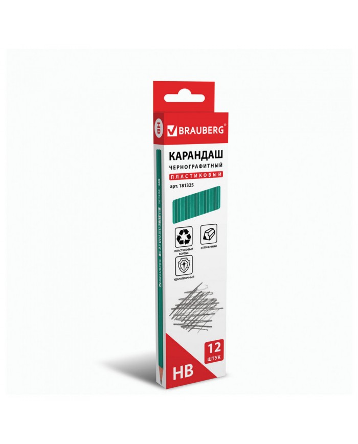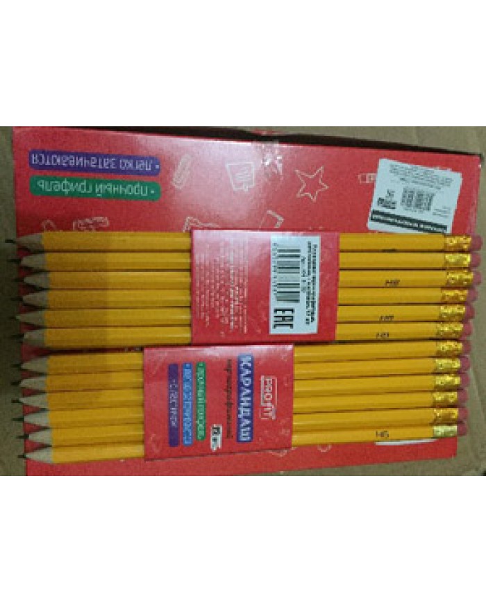 Шестигранный корпус карандаша изготовлен из пластика, оснащен ластиком. Карандаш легко точится и не крошится. Поставляется заточенным. Твердость грифе..