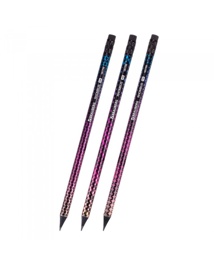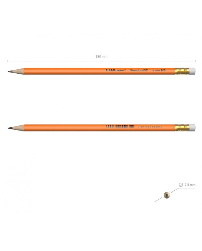 трехгранный деревянный корпус. Простые карандаши с ластиком поставляются заточенными. Твердость грифеляHB. Длина карандаша 185 мм...