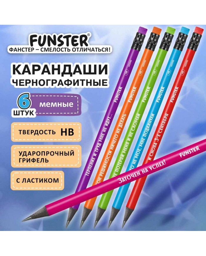 Карандаши чернографитные FUNSTER FUNNY NOTES изготовлены из пластика высокого качества. Легко и ровно затачиваются, максимально устойчивы к повреждени..