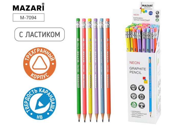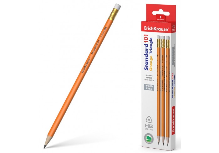 Эргономичный трехгранный карандаш из отборной древесины с ластиком, твердость НВ. Специальная пропитка древесины и сплошная проклейка грифеля обеспечи..