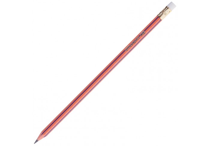 Пластиковый чернографитный карандаш с ластиком. Полосатый корпус. Твердость HB. Заточен...