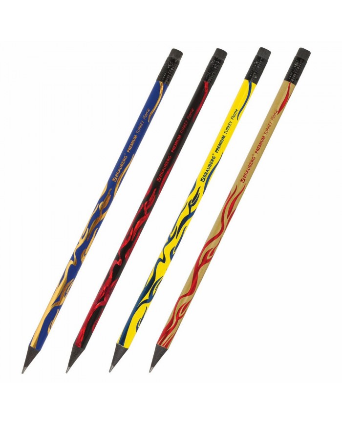 Карандаш чернографитный BRAUBERG "PREMIUM TURKEY", 1 шт., "Flame", НВ, ассорти, дисплей,