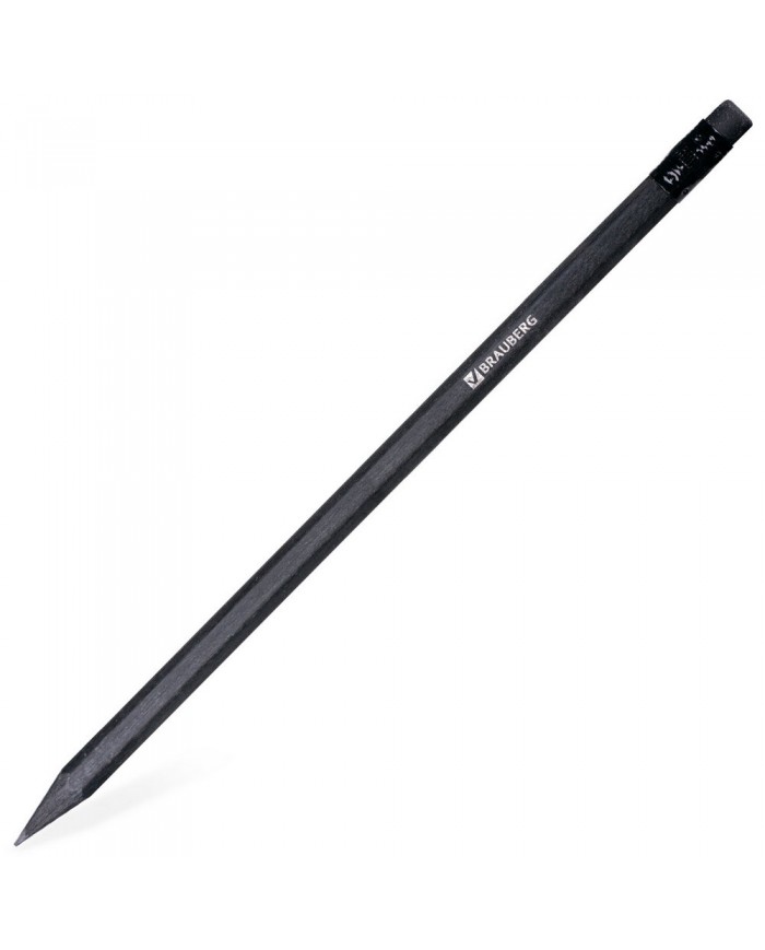 Карандаш чернографитный BRAUBERG, 1 шт., "Black Jack", НВ, с ластиком, черное дерево, корпус черный,