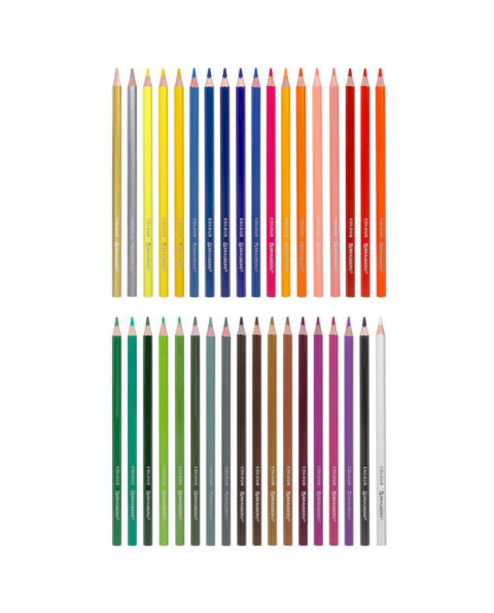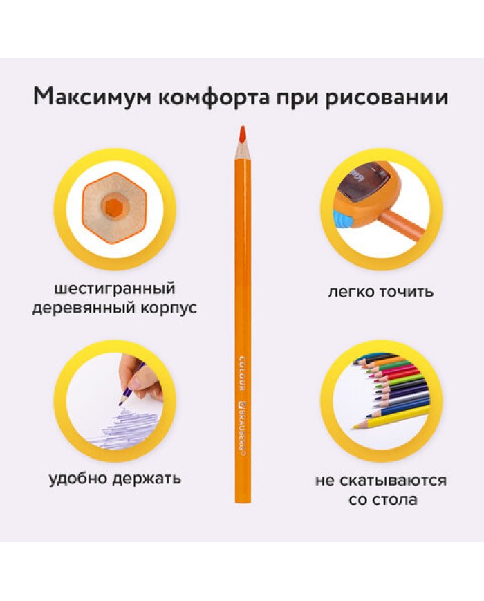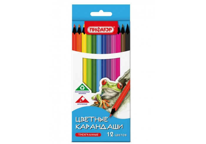 Набор состоит из 12 цветов: черный, синий, голубой, салатовый, зеленый, желтый, оранжевый, розовый, красный, серый, фиолетовый, коричневый. Шестигранн..