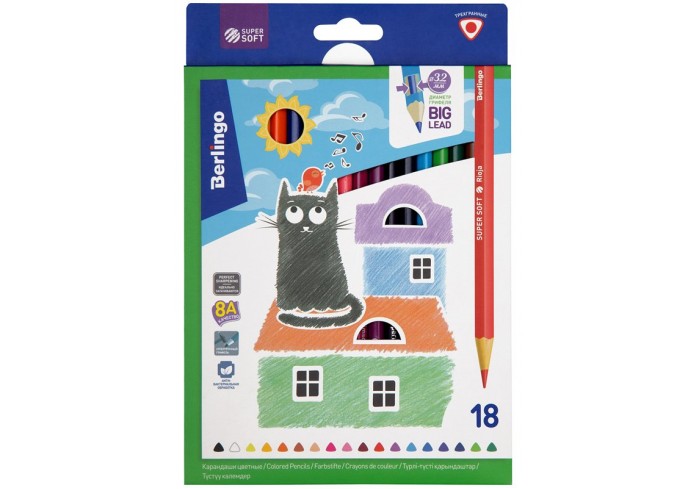 "SuperSoft" - линейка качественно новых цветных карандашей Berlingo. 18 цветов. Эргономичная трехгранная форма. Указание цвета на каждом карандаше на ..