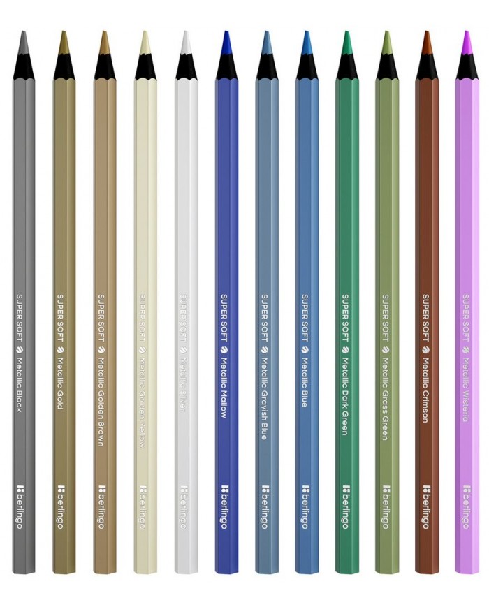 "SuperSoft" - линейка качественно новых цветных карандашей Berlingo. Набор цветных карандашей 12 цветов с металлическим блеском. Черное дерево. Шестиг..