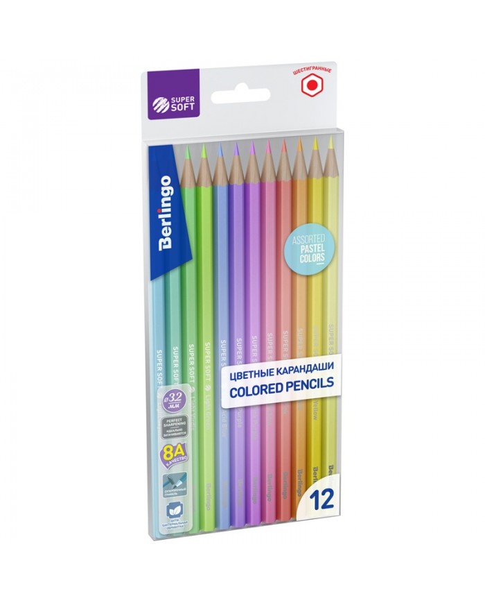 Карандаши цветные пастельные Berlingo "SuperSoft. Pastel", 12цв, заточен., европодвес