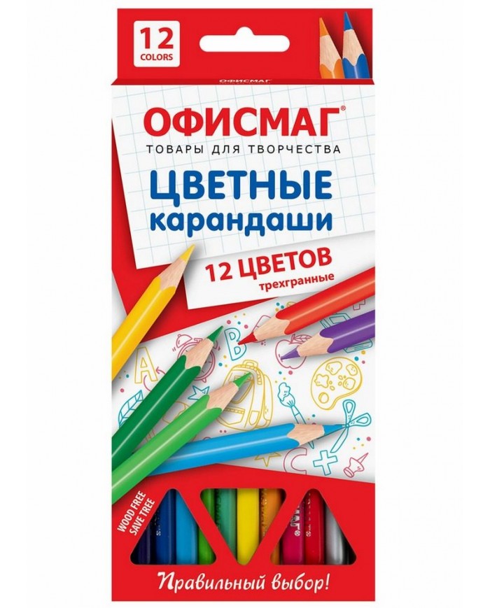 Карандаши цветные ОФИСМАГ, 12 цветов, трехгранные, грифель 3 мм, 181956
