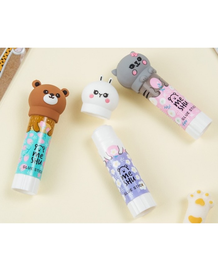 Клей-карандаш MESHU с топпером "Animals", 8г, дисплей бокс, ПВП, ассорти
