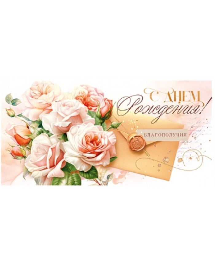 Конверт для денег Горчаков ГК "С ДНЕМ РОЖДЕНИЯ! БЛАГОПОЛУЧИЯ" (РОЗЫ) 84*168мм,