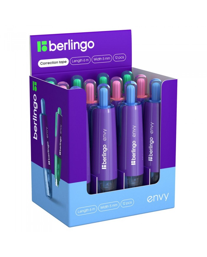Корректирующая лента Berlingo Envy подходит для машинописного или рукописного текста. Лента длиной 6 метров и шириной 5 мм точно и плотно покрывает ст..