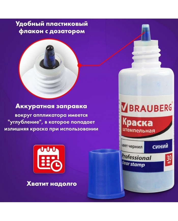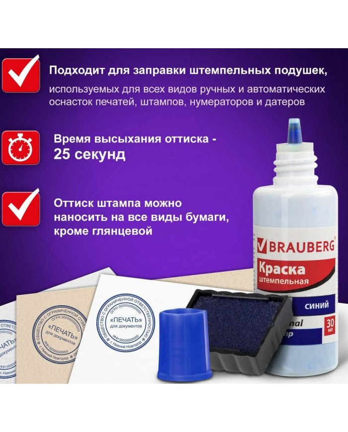Штемпельная краска на водной основе с содержанием глицерина для дозаправки настольных штемпельных подушекИспользуется с резиновым и полимерным клише П..