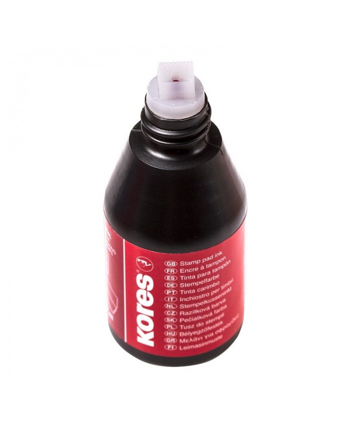 Штемпельная красная краска Kores на водно-масляной основе. Объем флакона 28 г. Флакон снабжен дозатором, обеспечивающим равномерное нанесение краски н..