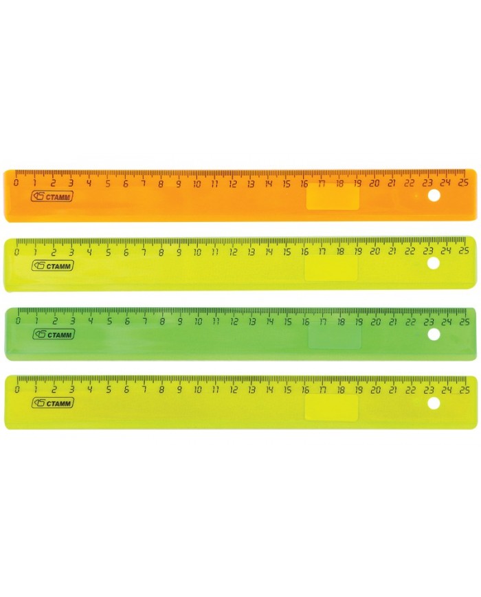 Линейка 25см Стамм "Neon Cristal", пластиковая, ассорти