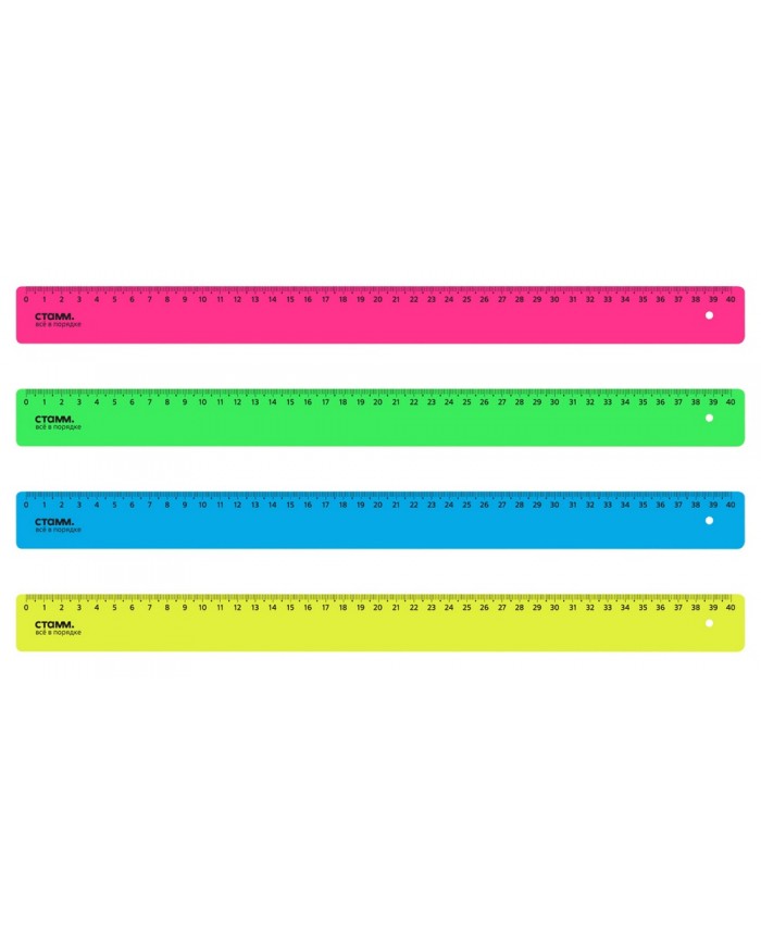 Линейка 40см СТАММ, пластиковая, непрозрачная, неоновые цвета, ассорти