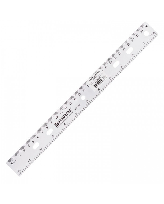 Линейка пластиковая 30 см, BRAUBERG "Crystal", прозрачная