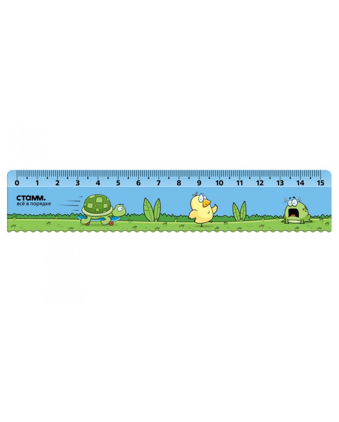Линейка 15см СТАММ "Черепашка", пластиковая, с волнистым краем, европодвес