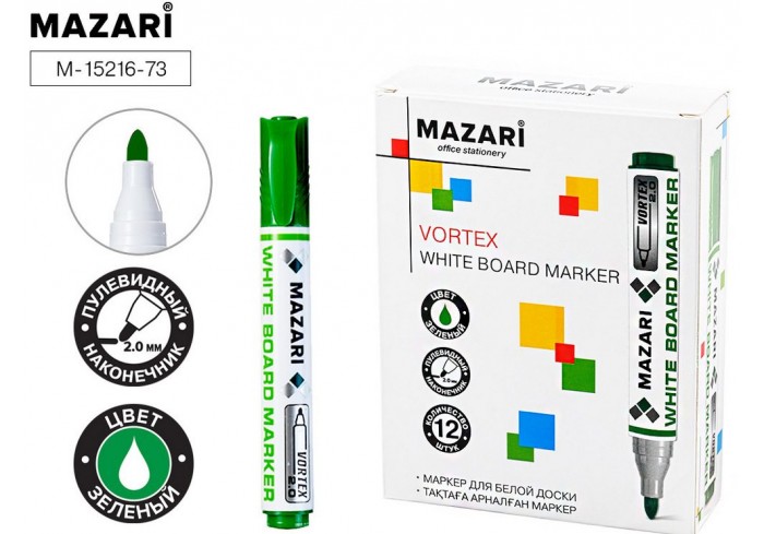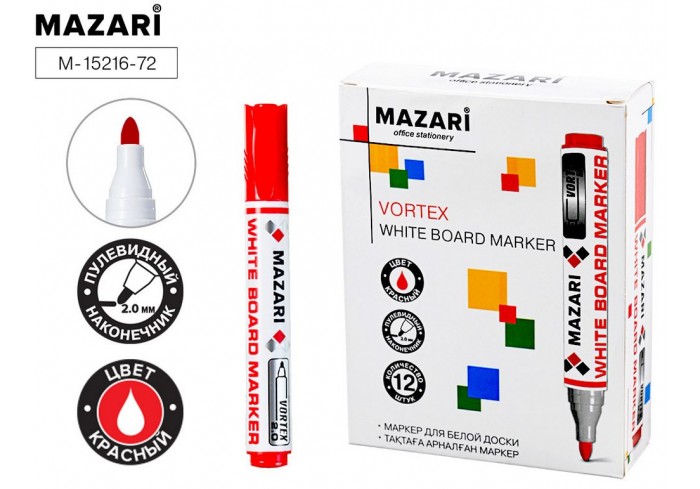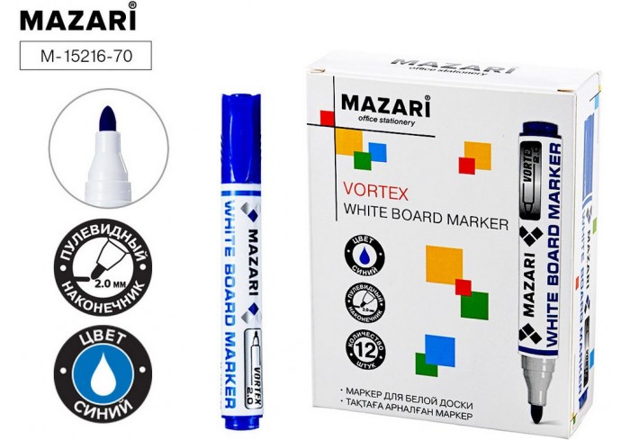 Маркер для письма и сухого стирания на досках. Незаменим во время проведения презентаций, совещаний и пр. Имеет круглую форму корпуса, цветной колпачо..