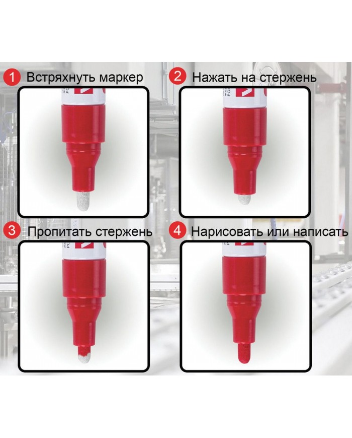 Используется для работы на металлических, деревянных, стеклянных и пластиковых поверхностях. Закругленный пишущий узел. Ширина линии - 2-4 мм. Длина н..