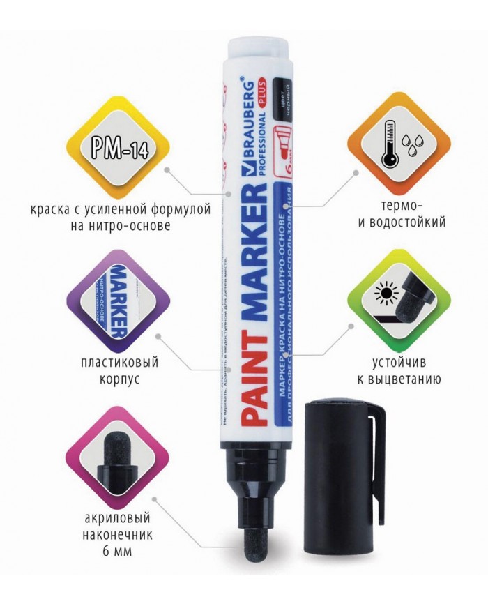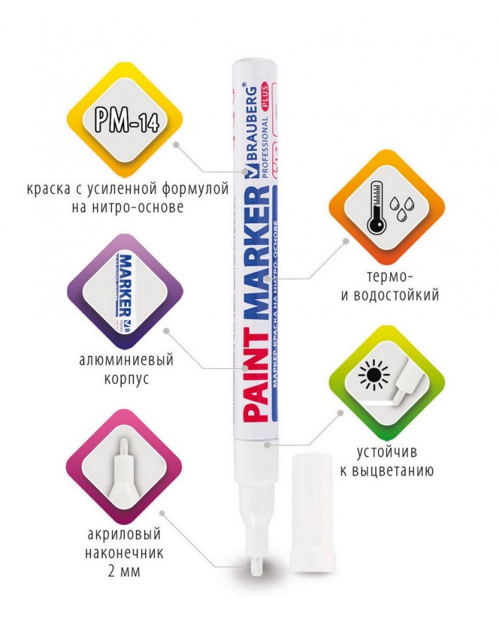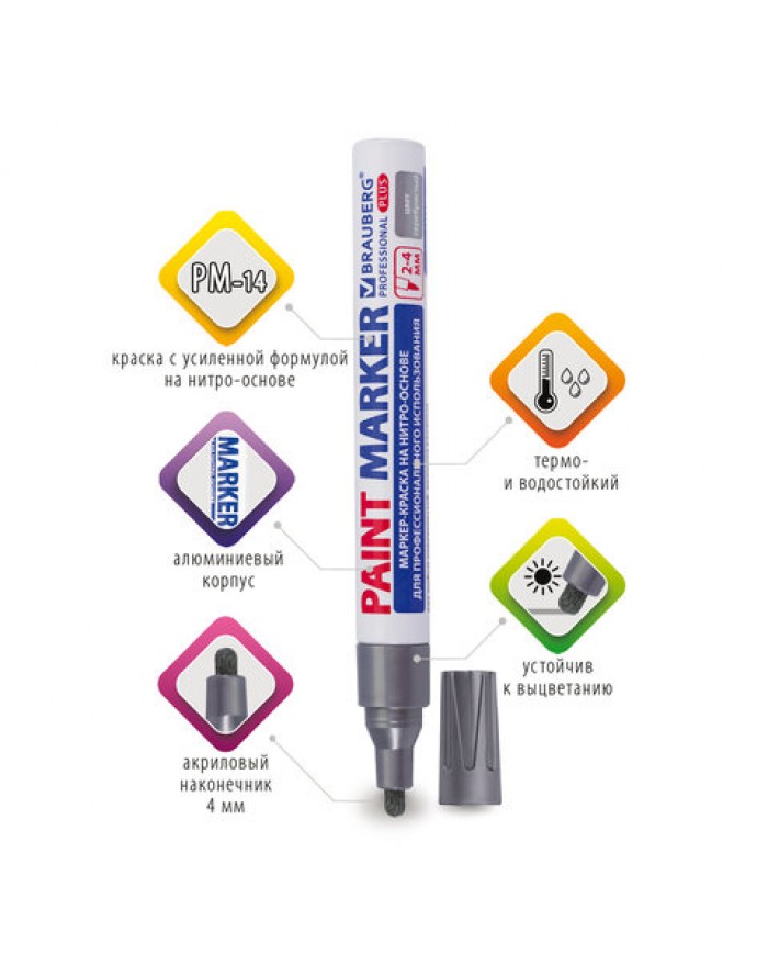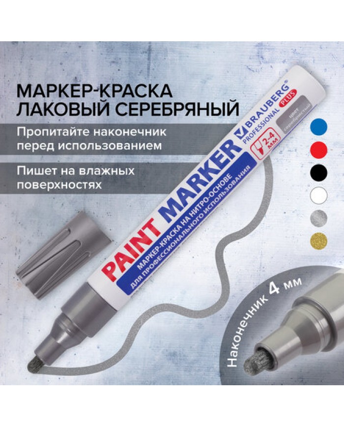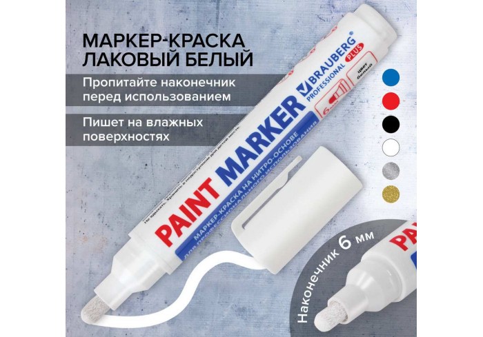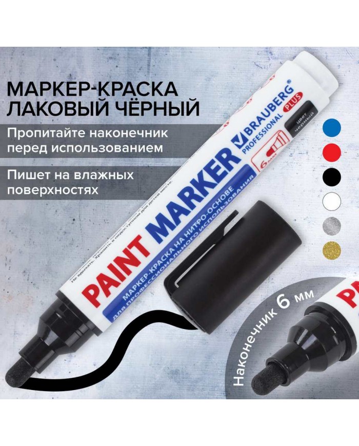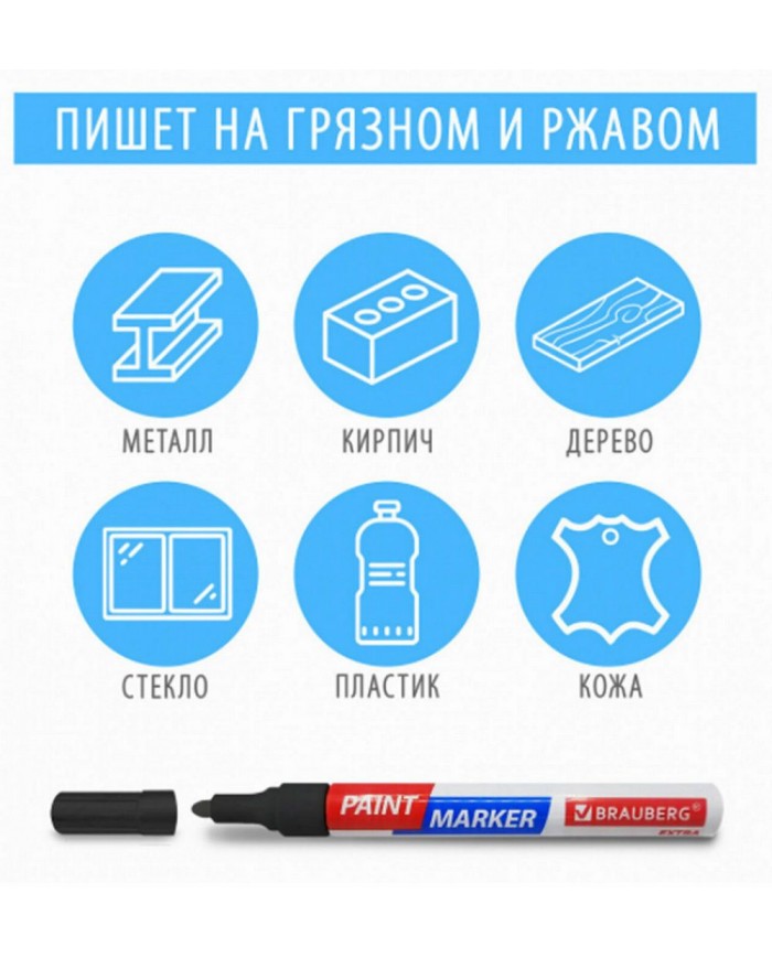 Маркер-краска лаковый BRAUBERG EXTRA предназначен для маркировки на различных поверхностях: бетон, дерево, стекло, металл, резина, пластик как в промы..