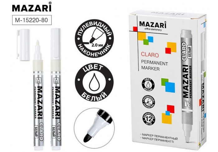 Перманентный маркер на спиртовой основе. Предназначен для письма на большинстве поверхностей: бумаге, коже, пластмассе, металле, резине, ткани. Устойч..