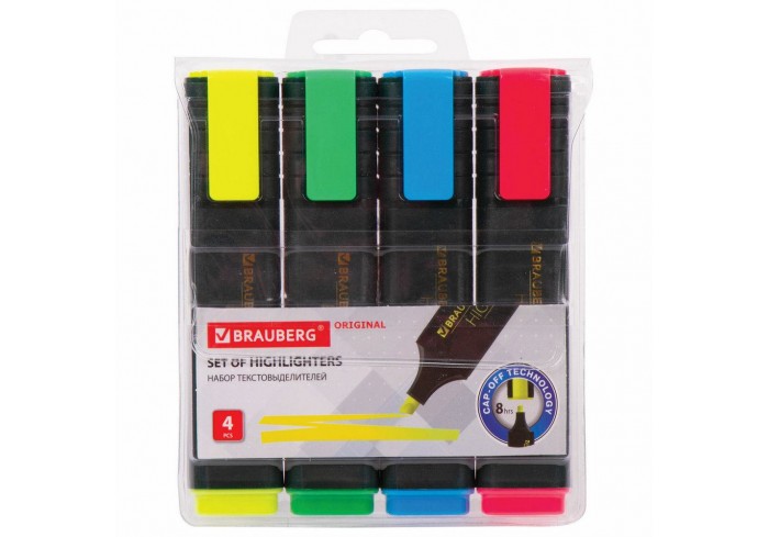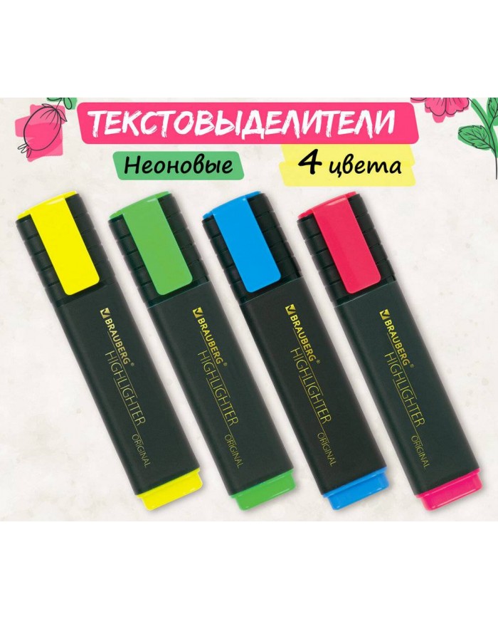 4 неоновых цвета в наборе: желтый, зеленый, оранжевый, розовый. Круглая форма корпуса диаметром 12 мм. Корпус тектовыделителя оснащен удобной зоной за..