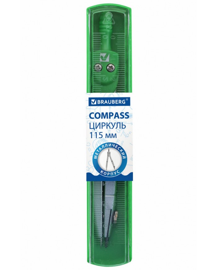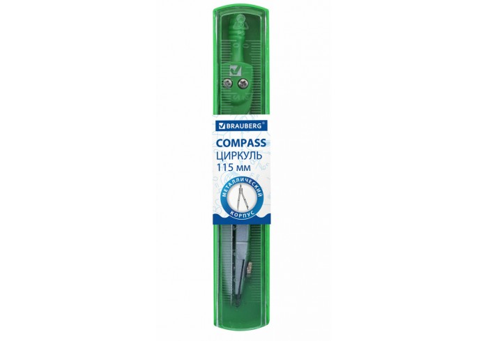 Инструмент длиной 115 мм имеет несгибаемые штанги. Изготовлен из металла, дополнительный цвет - зеленый. Поставляется в пластиковом пенале с прозрачно..