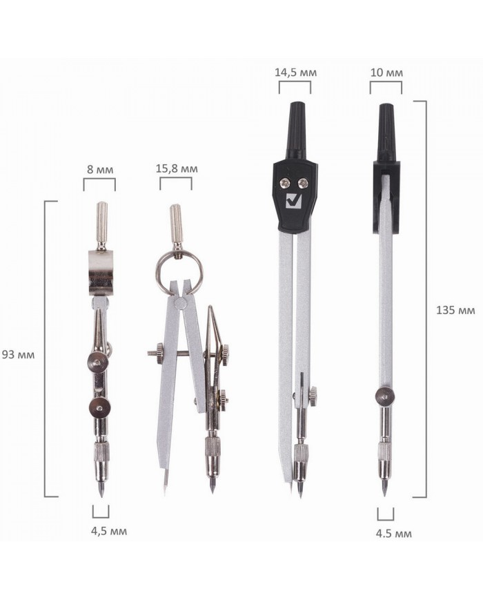 Металлическая готовальня предназначена для выполнения чертежных работ. Она пригодится как школьникам, так и студентам. В комплект входит 3 предмета: ц..