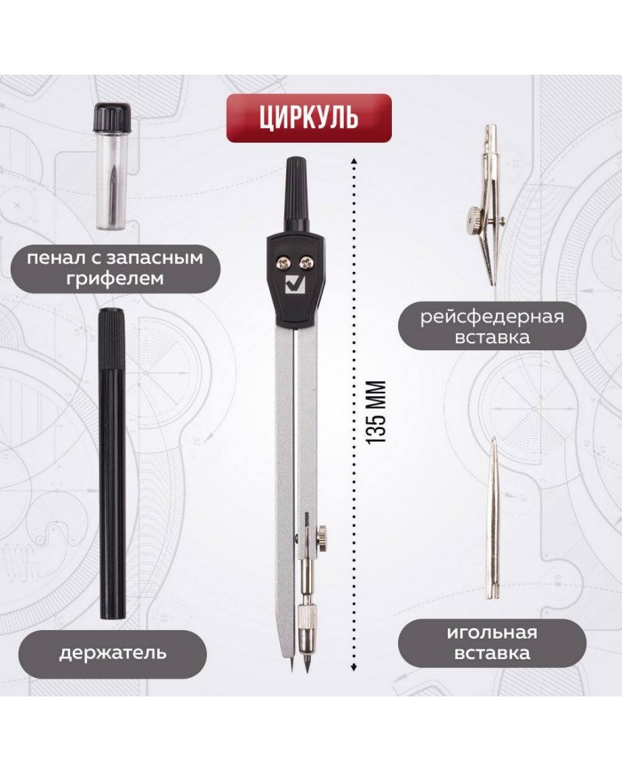 Циркуль 135мм в мягком чехле с европодвесом. Товар предназначен для чертежно-графических работ...