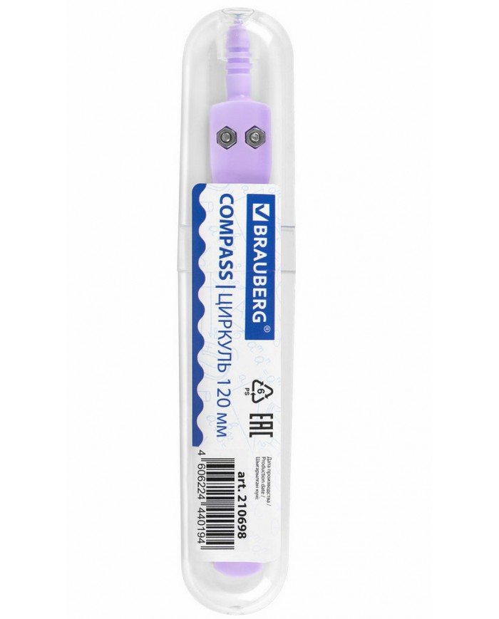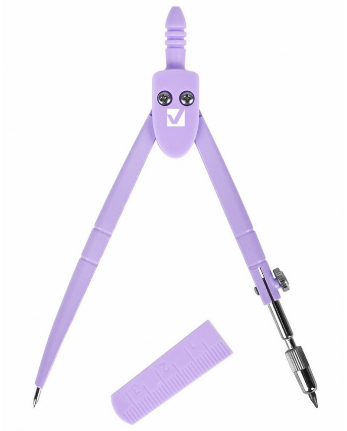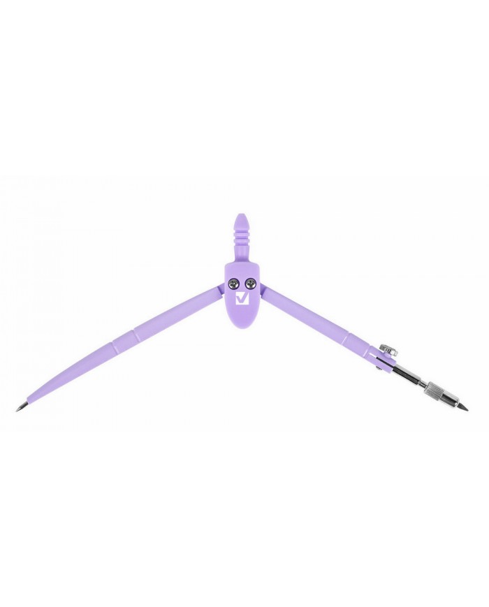Инструмент длиной 120 мм имеет несгибаемые штанги и подстраиваемый грифель. Циркуль пастельно-фиолетового цвета, изготовлен из металла, с пластиковым ..