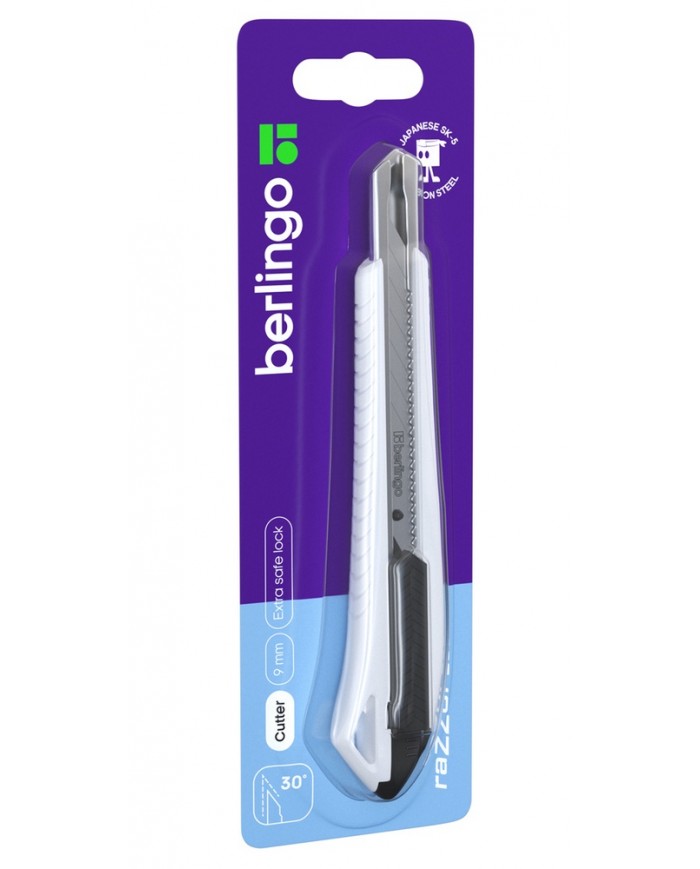 Нож канцелярский 9мм Berlingo "Razzor 200", auto-lock, металл. направл., белый, европодвес