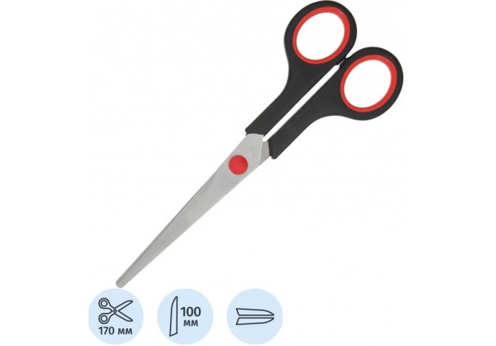 Ножницы универсальные Выбор есть 170 мм пластиковые ручки с резиновыми вставками красного и черного цвета. Универсальные ножницы Выбор есть - это прак..