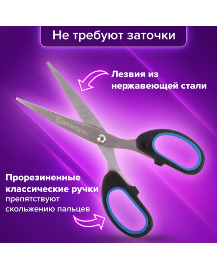 Универсальные ножницы BRAUBERG "Classic+" - удобный и точный инструмент для легкого разрезания бумаги, картона, ткани и других видов материалов. Идеал..
