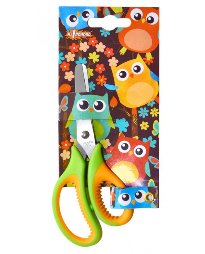Ножницы для детей, лезвия выполнены из стали с закругленным концом для повышенной безопасности. Эргономичные пластиковые ручки с резиновыми вставками ..